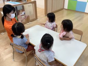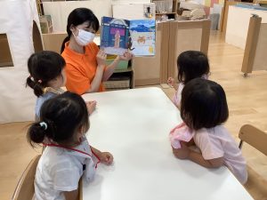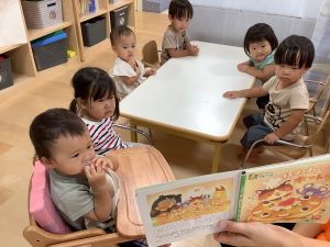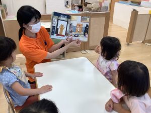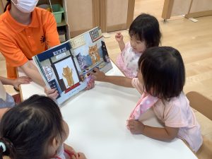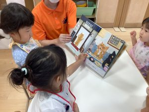 絵本が終わると、ねこさんにバイバイと手を振っていましたよ![]()