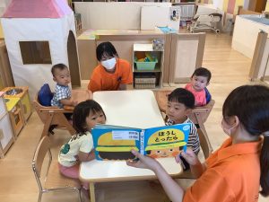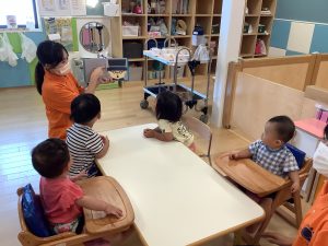 お盆期間中ということもあり少ない人数での保育でしたが、まったりゆったり過ごせていました