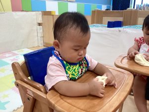 『これ〜(^O^)』と言ってぶどう🍇の果物の形を触っていました