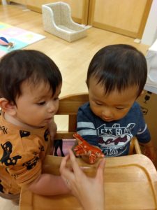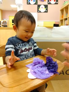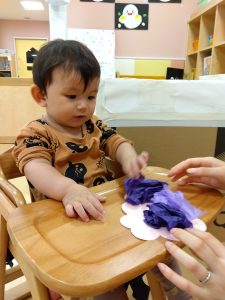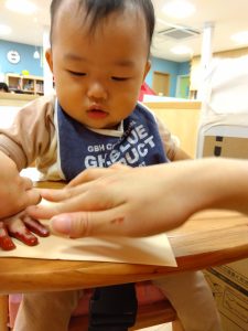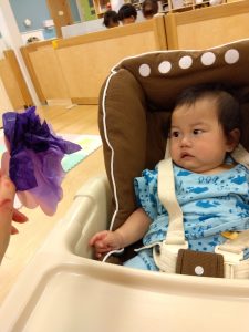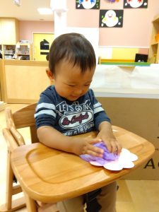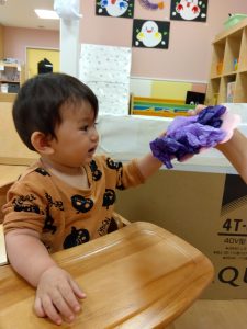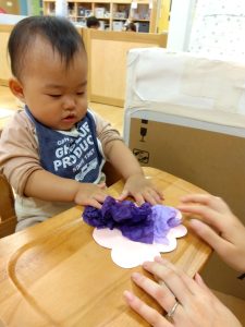 今週は製作をしている【0歳児🍑もも組】の子どもたちの様子をご紹介します