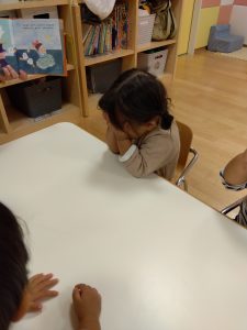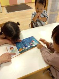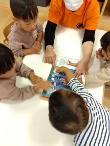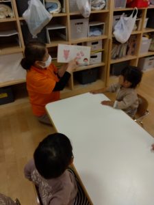 保育者が「みんなも仮装してハロウィンしようね」と話すと、ワクワクする表情が見られました