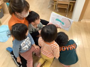みんなでおしゃべりしながら楽しく絵本を見ていましたよ![]()