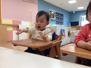 保育者にも園生活にもすっかり慣れ、安心して保育者のお膝に座ってくれています![]()