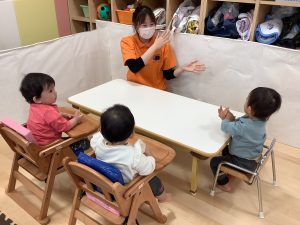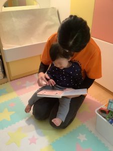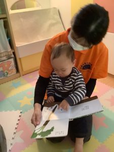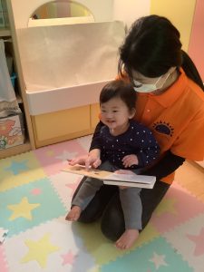 絵本が始まる手遊びもノリノリでしてくれています![]()