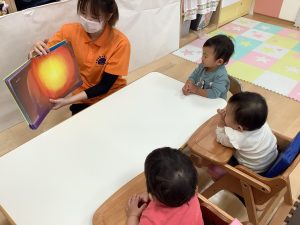 今週は【0歳児🍓いちご組】の子どもたちが絵本を見ている様子をご紹介します![]()