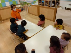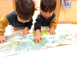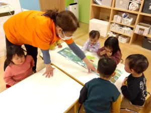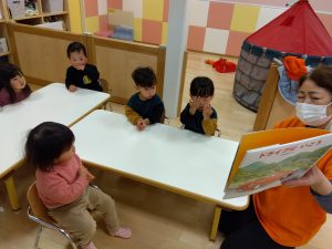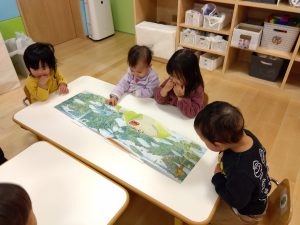 お散歩前の絵本タイムの様子をご紹介します![]()