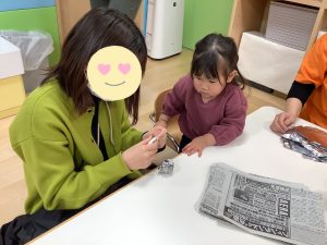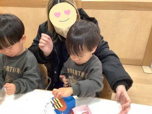 お母さんお父さんと一緒にノリを使って楽しく作ってくれていました