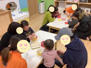 おやつもお母さんに見守ってもらい嬉しそうでした