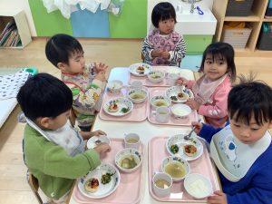 給食にハンバーグは…なんと鬼さん👹