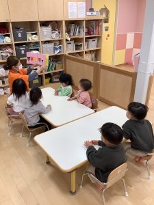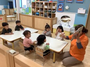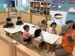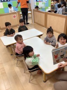 今週は【1歳児🍓いちご組】さんの絵本の様子をご紹介します