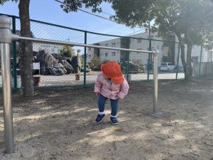 鉄棒にぶつからないように…