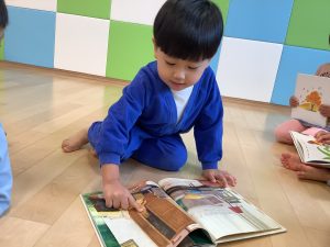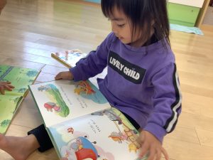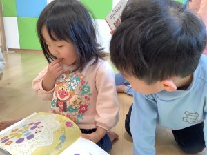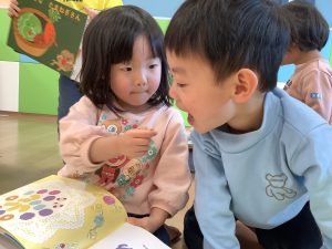 今週は延長保育の時間に絵本を読む子どもたちの様子をご紹介します