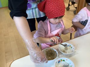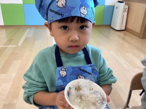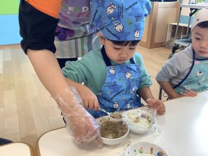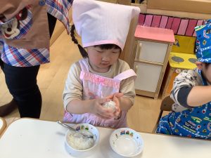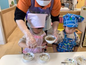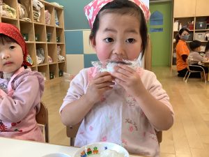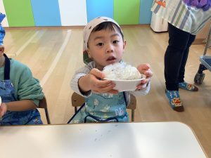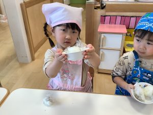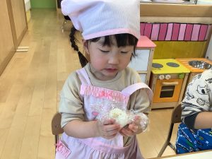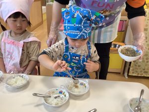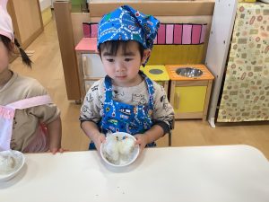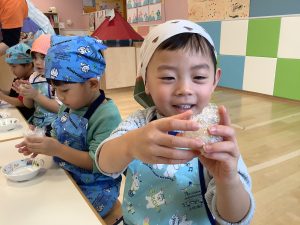 自分で作ったおにぎり🍙とっても嬉しそうでした![]()