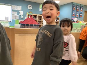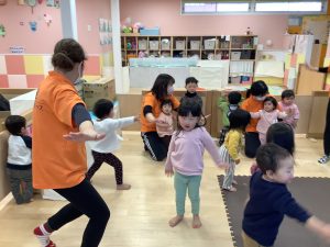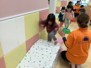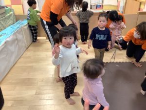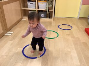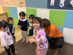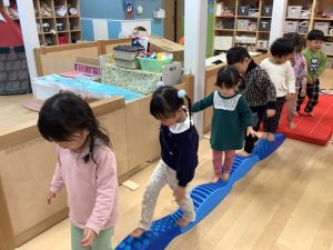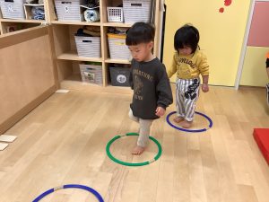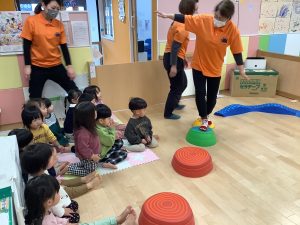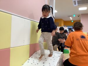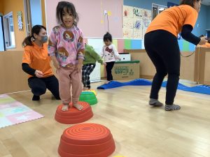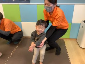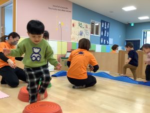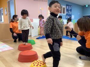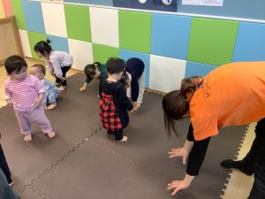 体操のカリキュラムの中で楽しく身体を動かしながら、バランス感覚や距離感、身体の使い方、遊びのルールなどを学んでくれています