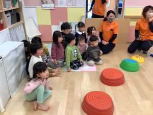 上手に座ってお話を聞く子どもたち