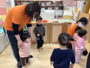 まずは保育者がお手本を見せます