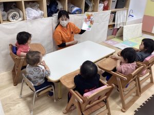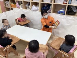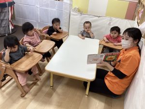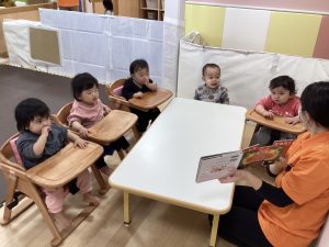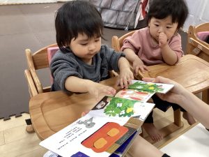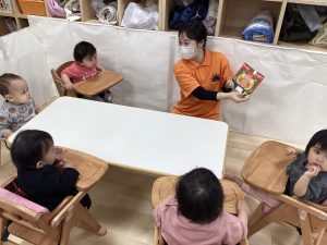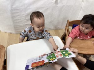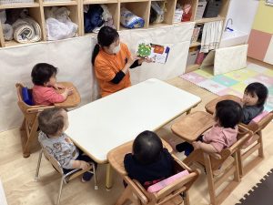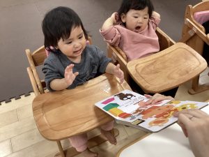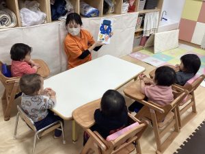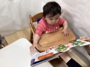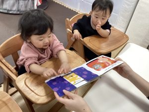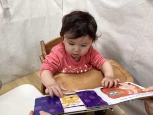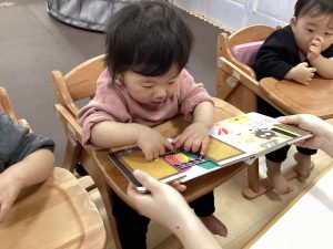 今週は【0歳児🍑もも組】さんの絵本の様子をご紹介します![]()