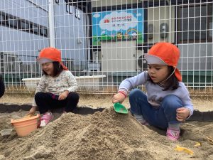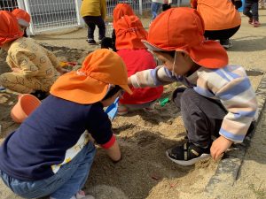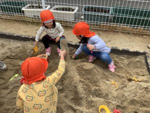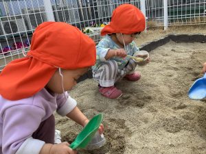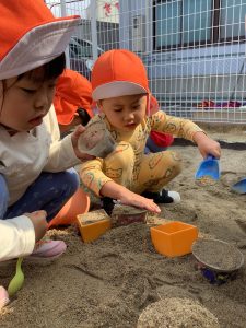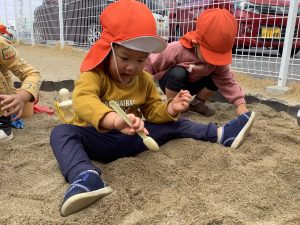 お砂場ではお友だちと一緒にご馳走作りやお山作り