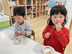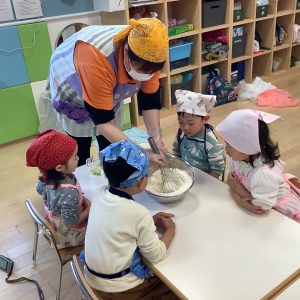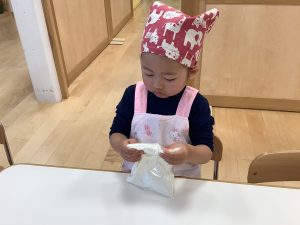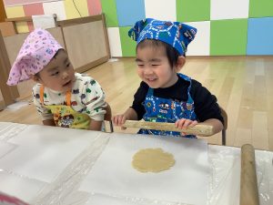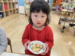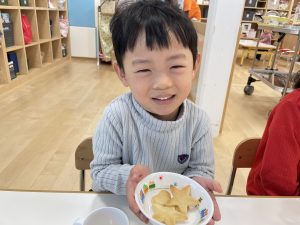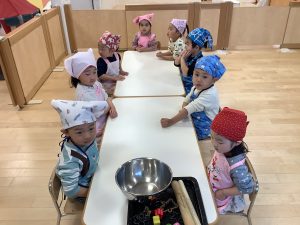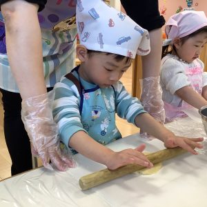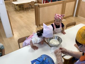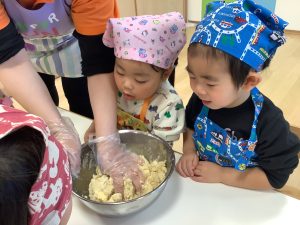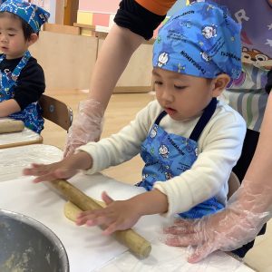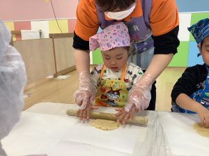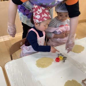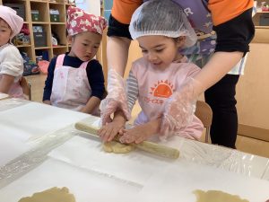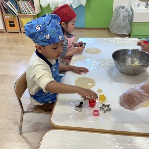 今日は【2歳児🍎りんご組】でクッキー作りをしました