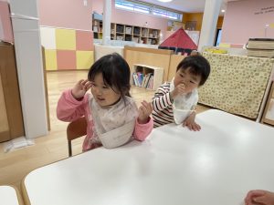 保育者が読むのに合わせて体を左右にゆらゆら![]()