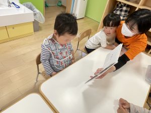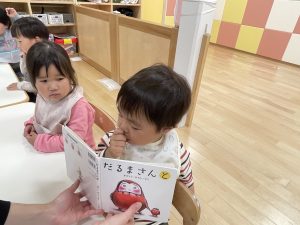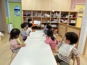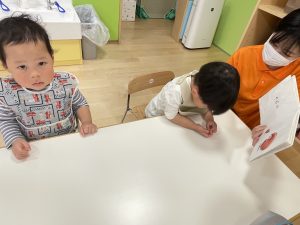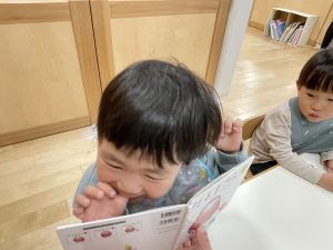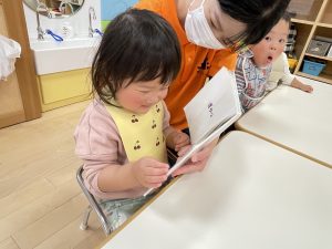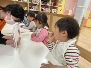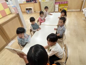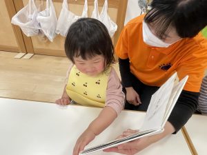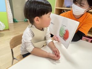 今週は【2歳児🍎りんご組】さんの絵本の様子をご紹介します![]()