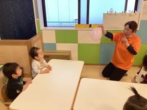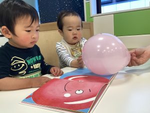 お月様を見て風船だと思った友だちが「あっちあったよー」と目をキラキラさせて風船の方を見て教えてくれましたよ