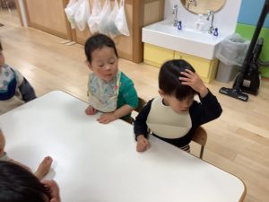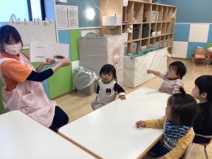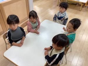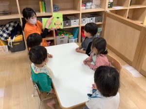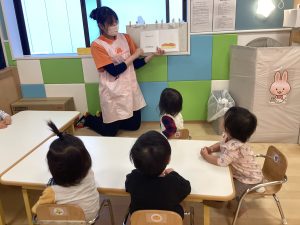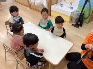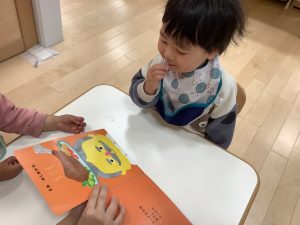 【2歳児🍎りんご組】さんは給食前の絵本タイム