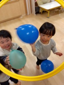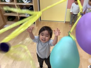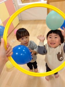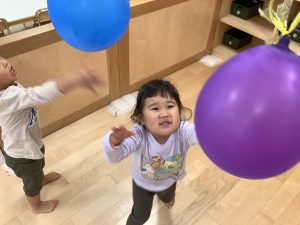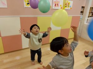 2歳児🍎りんご組のお友だちは、大好きな風船遊びを楽しみました