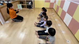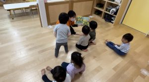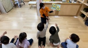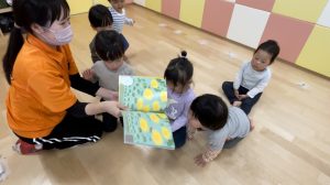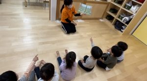 絵本前の手遊びも大好きで元気よく歌ってくれる子どもたち![]()