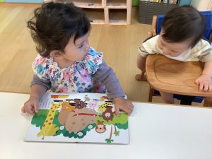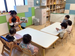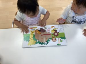 今週は1歳児🍓いちご組と、0歳児🍑もも組さんの絵本の様子をご紹介します![]()