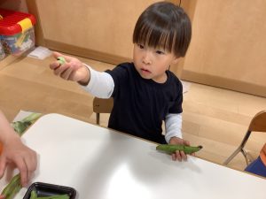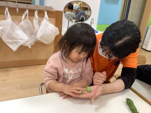 普段豆が苦手でなかなか進まない子も、『自分がむいた豆