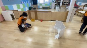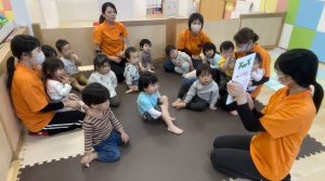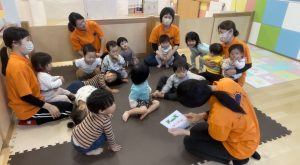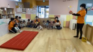 」と保育者の説明をワクワクしながら聞く子どもたち![]()