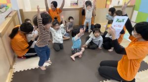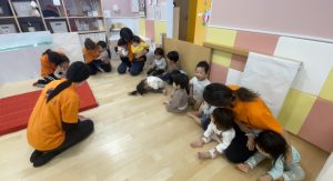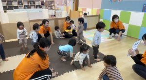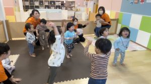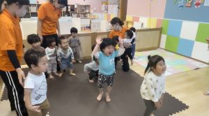 絵本を読み終わるとみんなカエル🐸やうさぎ🐇…いろいろな動物になりきってジャンプを楽しみました![]()