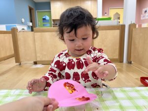 手が絵の具だらけになると不思議そうなお顔