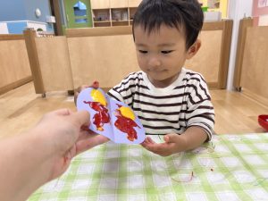 画用紙に絵の具をつけてデカルコマニーをしました