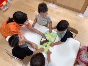 アリさんや風、雨などを無事に乗り越えたカメムシかあさんを見て子どもたちも安堵の表情が見られました![]()