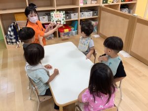 保育者「小さなつぶつぶがあるよ〜何だろうね