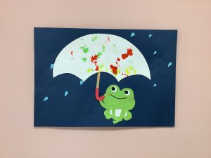 絵の具をペタペタして遊んだ作品がカラフルな傘になりました![]()