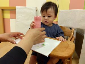 ペタペタするよりも絵の具が付いている部分の方が気になるようで何度も見てくれていましたよ![]()