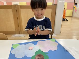 今週は6月の壁面の製作を楽しむ【0歳児🍑もも組】と