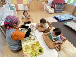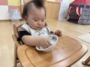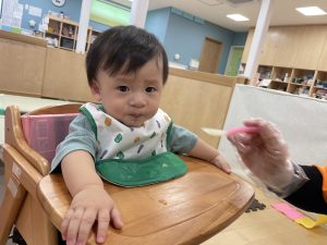 今週はそんな元気いっぱいの【0歳児🍑もも組】さんの給食の姿をご紹介します![]()