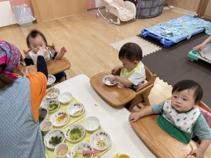 7月から4人になった0歳児のお友だちは遊ぶことも食べることもだーいすき![]()