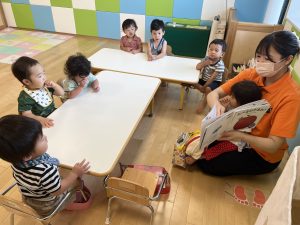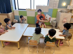今週は【1歳児🍓いちご組】さんの絵本の様子をご紹介します![]()