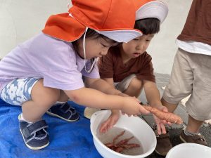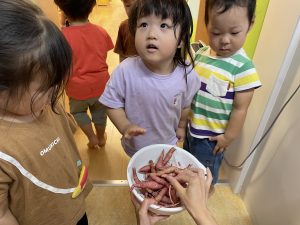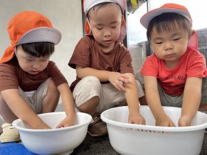 お芋をとった後は、りんご組のお友だちがキレイに洗ってくれました