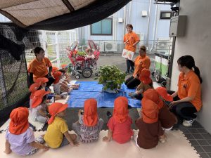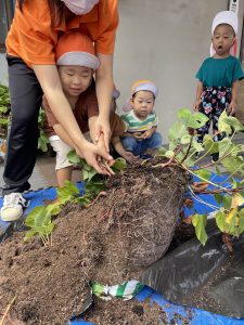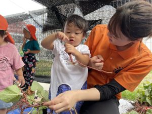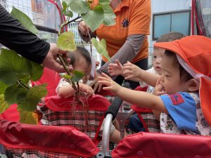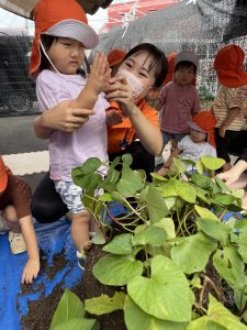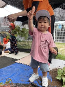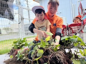 サツマイモの葉っぱにも興味を持ってくれたようで積極的に触ってくれていました