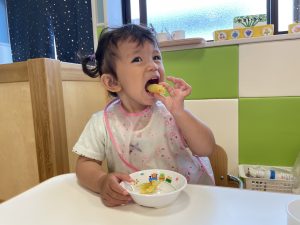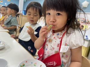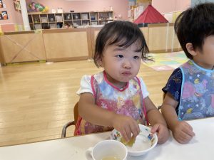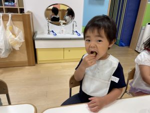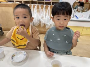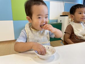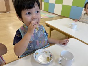 保育者が「おいしい」と聞くと