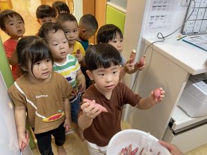 おやつの時間に、みんながとってくれたサツマイモを食べました🍠