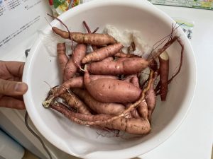 給食の先生にサツマイモを持って行って