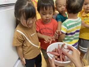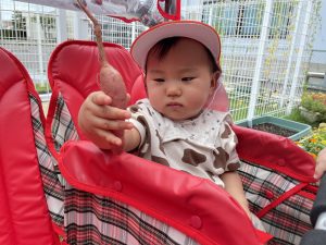 お芋を持つと嬉しかったようでしばらく離さない姿も