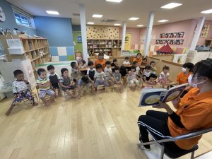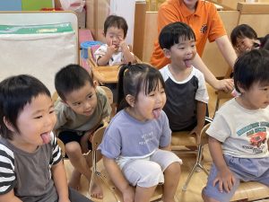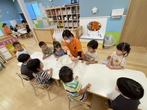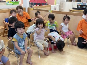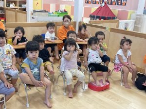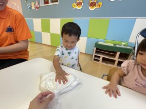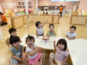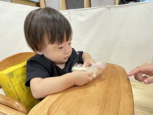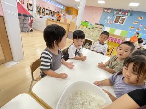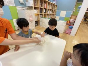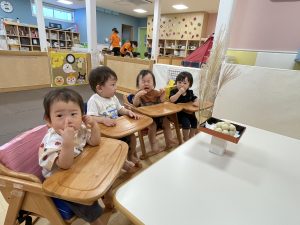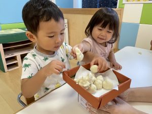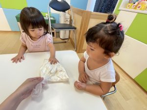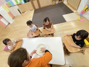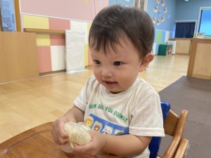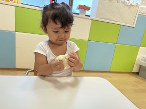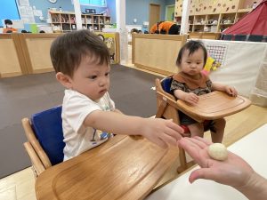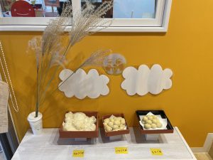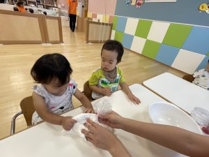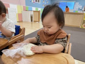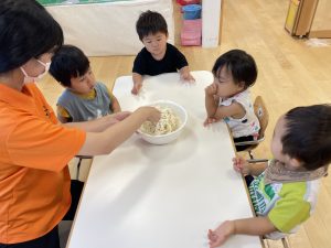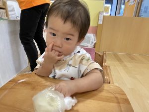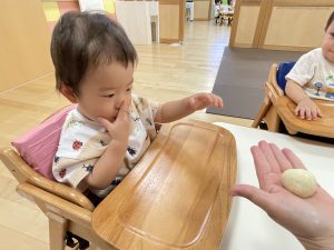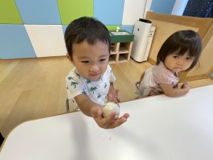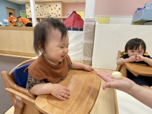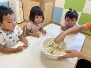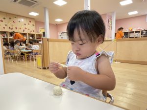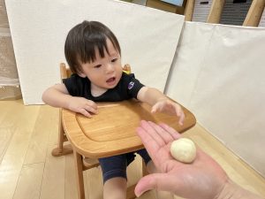 丸めてお団子を作るとおいしそうに見えたようで手を伸ばす子どもたちでした![]()